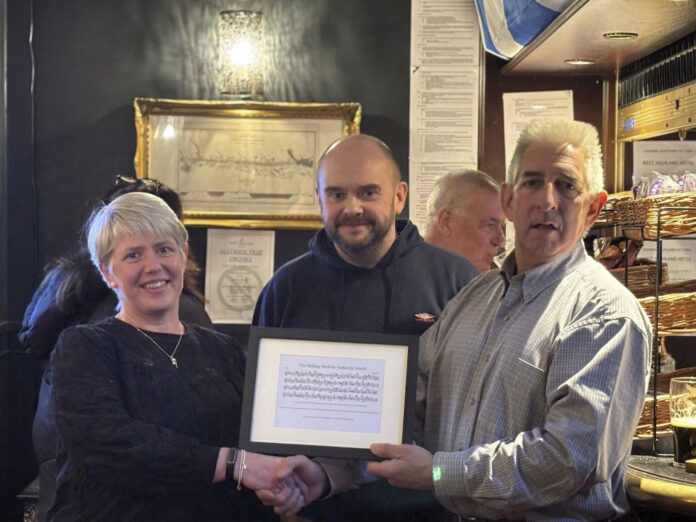 The awards were presented at a ceilidh in the West Highland Hotel on Saturday afternoon, November 22, 2025. Members from the Mallaig Harbour Authority Offices were in attendance, as were the members of the MAaD Pipe Band. The pipers and drummers displayed their versatility on a few other instruments in true West Highland Ceilidh fashion. A framed copy of the winning tune was presented to Jacqueline McDonell, Chief Executive Officer of the Mallaig Harbour Authority. Jacqueline assured everyone that it will be given pride of place within the Mallaig Harbour Authority offices.