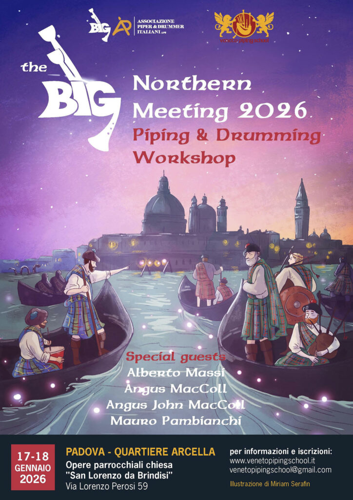 The NPC has enjoyed a long relationship with many pipers and drummers in Italy and each spring we work in partnership with the Italian Association of Pipers and Drummers to deliver a 4-day workshop. This year the school will take place in Calambrone, just outside Pisa, and will run from 30 April – 3 May. This always prove to be an enjoyable and informative few days and is situated on a beautiful coastal location. Last year the piping tuition was delivered by Wilson Brown, Andrew Bova and Italian legend Alberto Massi. Keep an eye on the https://www.bagpipe.it/ website for 2026 bookings opening.
