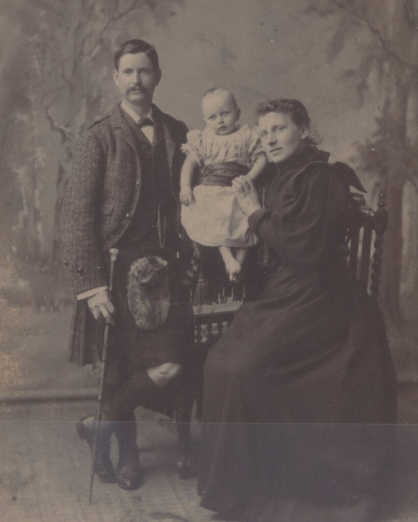 Mrs John MacColl was the wife of John MacColl, who composed the tune. She was Ellen Carruthers, born in 1863. The Carruthers family were originally from Dumfries and all the children had been born there but by 1881 they were living at the home farm on the Kilberry estate where Ellen’s father John was the farm manager. Ellen’s brother John was an excellent piper. By 1891 Ellen was employed as a housemaid at Dunach, where her elder sister was the cook. A younger sister Jeannie was commemorated in the march Jeannie Carruthers. John and Ellen were married at Dunach in 1894 and set up home at 9 High Street in Oban, where John had been living prior to his marriage. A few years later the family had moved to Kilbowie Cottage and in 1908 they moved to Glasgow. John and Ellen had two sons and two daughters.